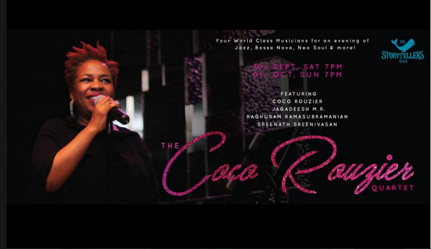 * Jazz Quartet featuring American singer Coco Rouzier at Storyteller's Bar Pondycherry on Sep 30 and Oct 1 2017.